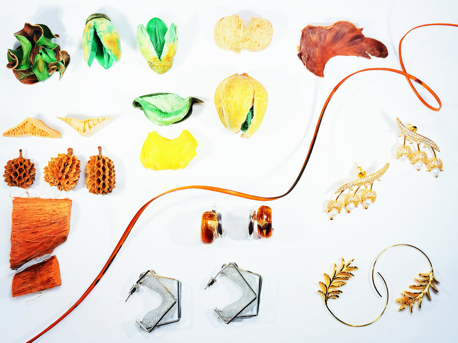 Aurelia celebrates the glow of harvest — luminous, abundant, and refined. Each piece transforms the brilliance of nature into sculptural jewelry, crafted in 18K gold- or white gold-plated brass, and enhanced with protective layers for lasting shine. The collection evokes the elegance of autumn light, carrying the warmth and richness of the season in every detail.