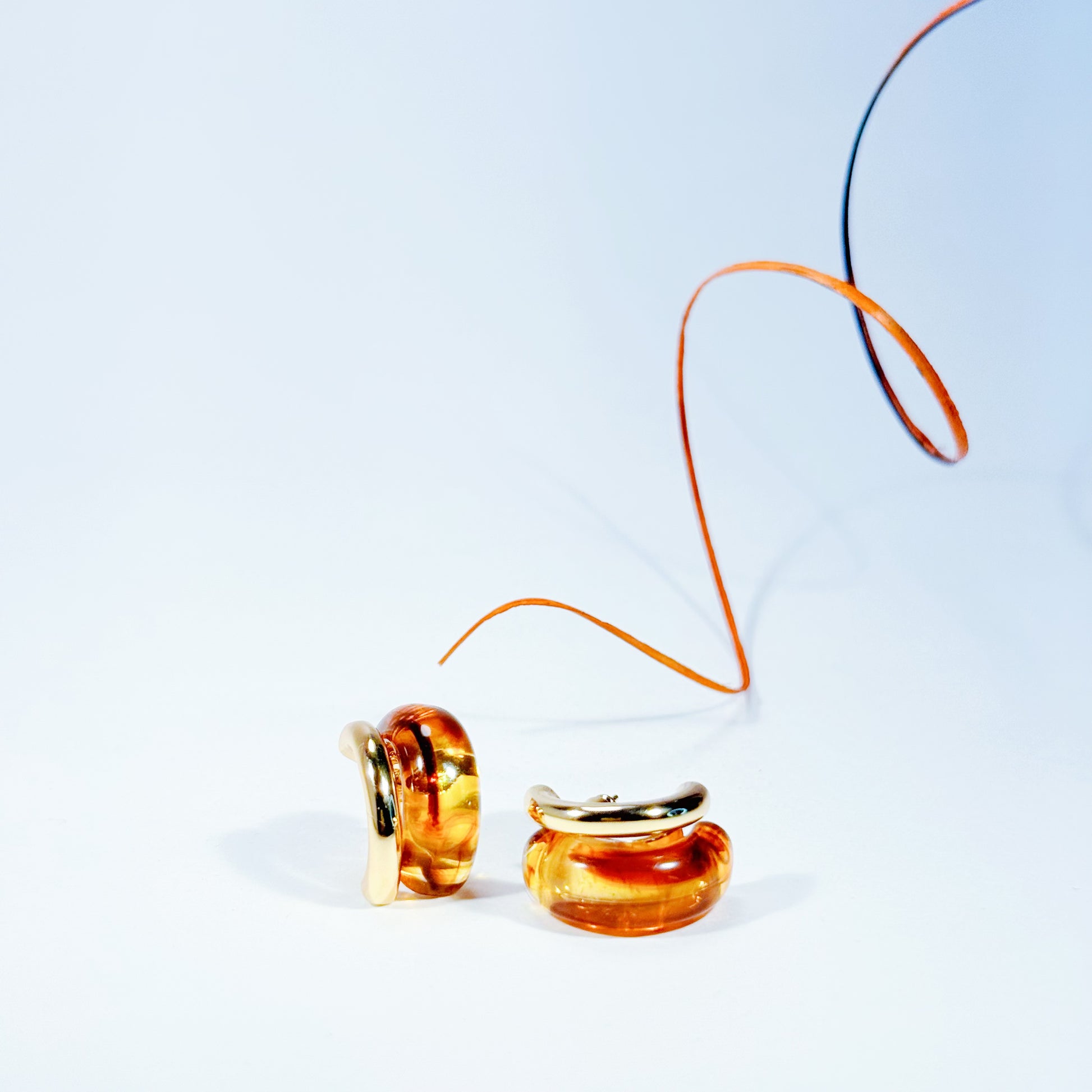 Sleek half-moons accented with genuine amber, balancing minimal form with sculptural depth.